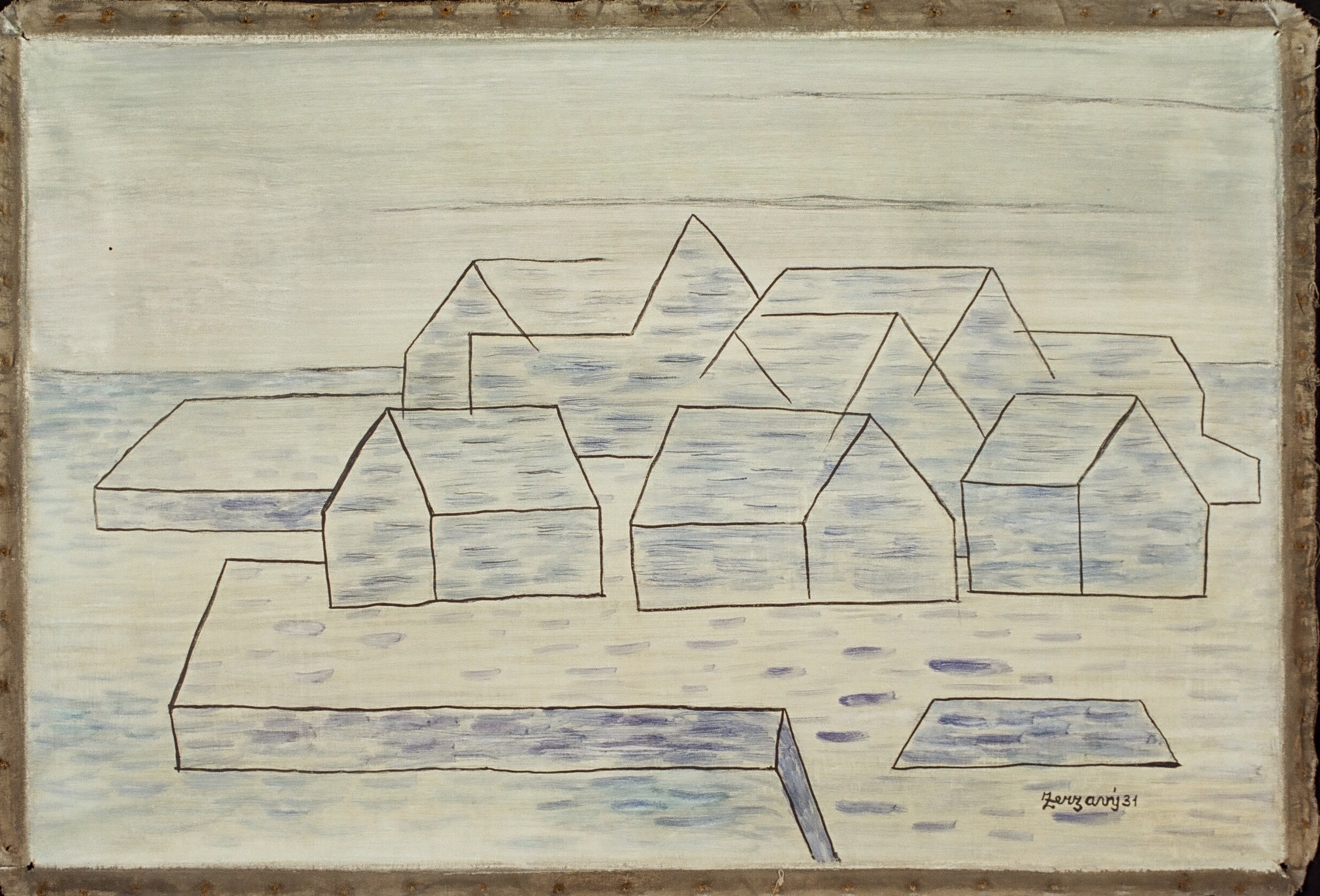 Ile de Sein, rozměry: 40 x 60 cm + okraje plátna, technika: tempera na plátně, signatura: značeno vpravo dole Zerzavý 31