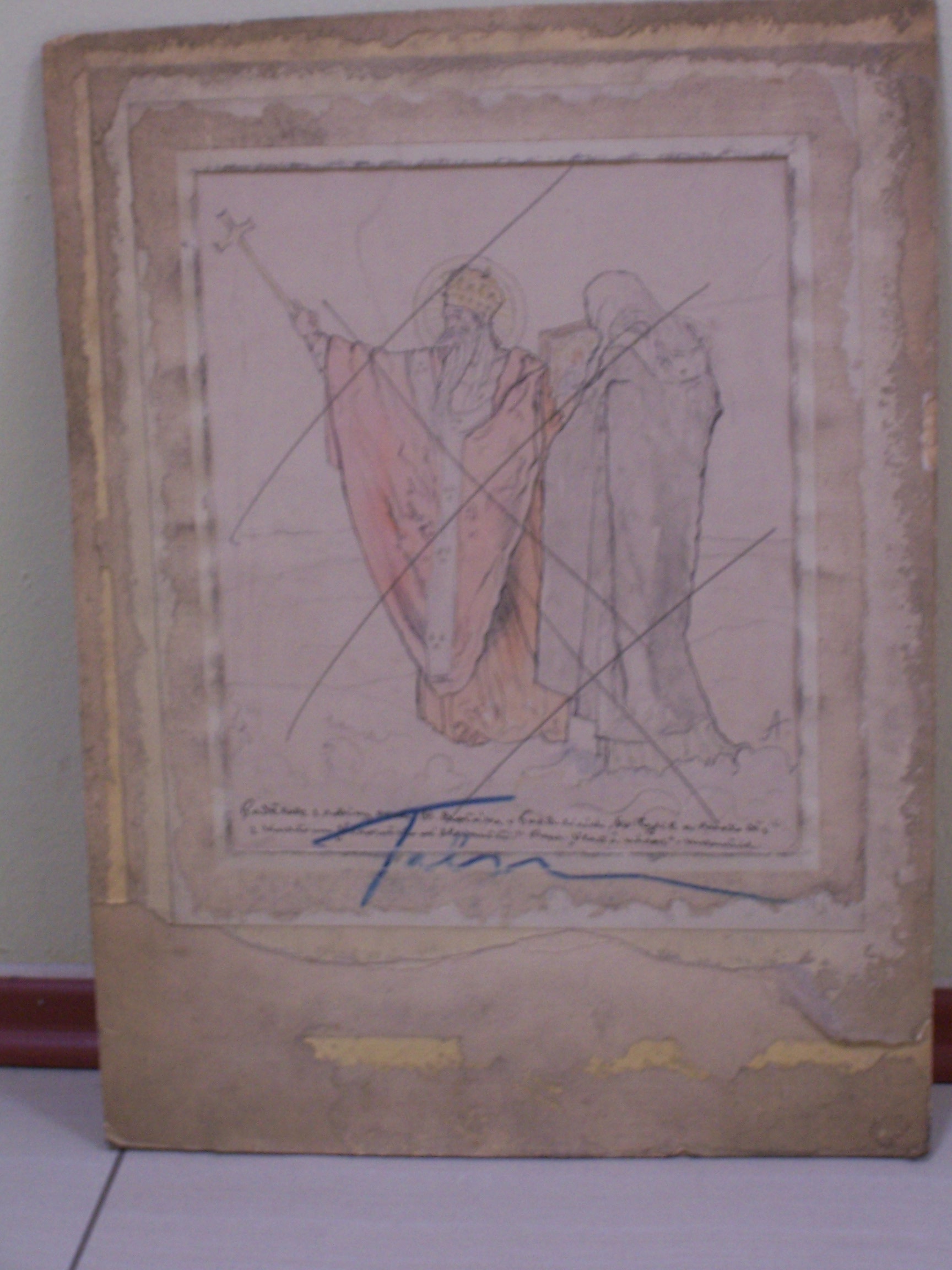 Cyril a Metoděj, rozměry:37x27, kolorovaná kresba tužkou,signováno vpravo dole A,přešktnuto tužkou a modrý přípis dole Falzum
