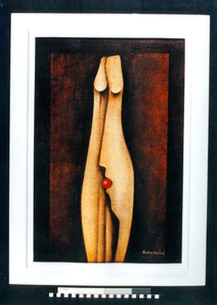 Tři postavy, 40 x 27 cm, kombinovaná technika na papíře - rámováno, paspartováno, signováno - Zrzavý 30 - vpravo dole. Pozn. Podle znaleckého posudku Ing. Ivana Baťky se jedná o dílo Jana Zrzavého z roku 1930, odhadní cena činí podle posudku 68.000,- Kč. Reprodukce díla je publikována v kalendáři firmy BASF.