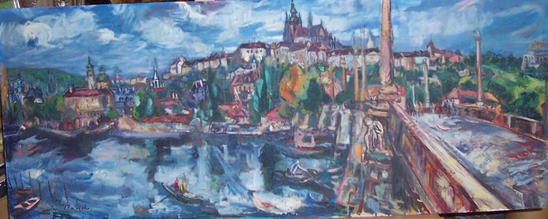 Hradčany s Mánesovým mostem, rozměry - 47,8 x 122,2 cm , olej na sololitu, signováno vlevo dole "Jan Bauch".
