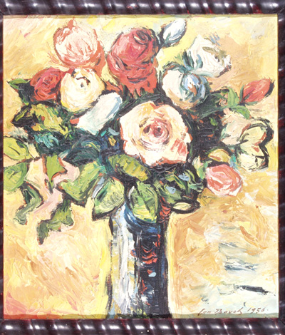 Kytice, 55 x 50 cm, olej na plátně - rámováno, signováno - Jan Bauch 1956 - vpravo dole. Pozn. Podle znaleckého posudku Ing. Ivana Baťky se jedná o dílo Jana Baucha (nar. 1898), odhadní cena činí podle posudku 68.000,- Kč.