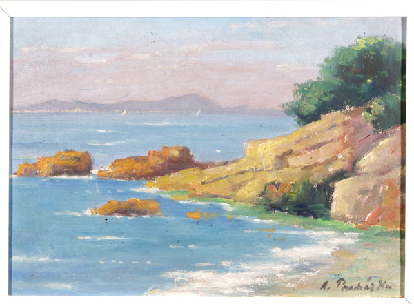 Pobřeží, 25 x 35 cm rámováno, olej na kartonu, signováno - A. Procházka - vpravo dole. Pozn. Podle znaleckého posudku Ing. Ivana Baťky se jedná o dílo Antonína Procházky (1982 - 1945), odhadní cena činí podle posudku 30.000,- Kč