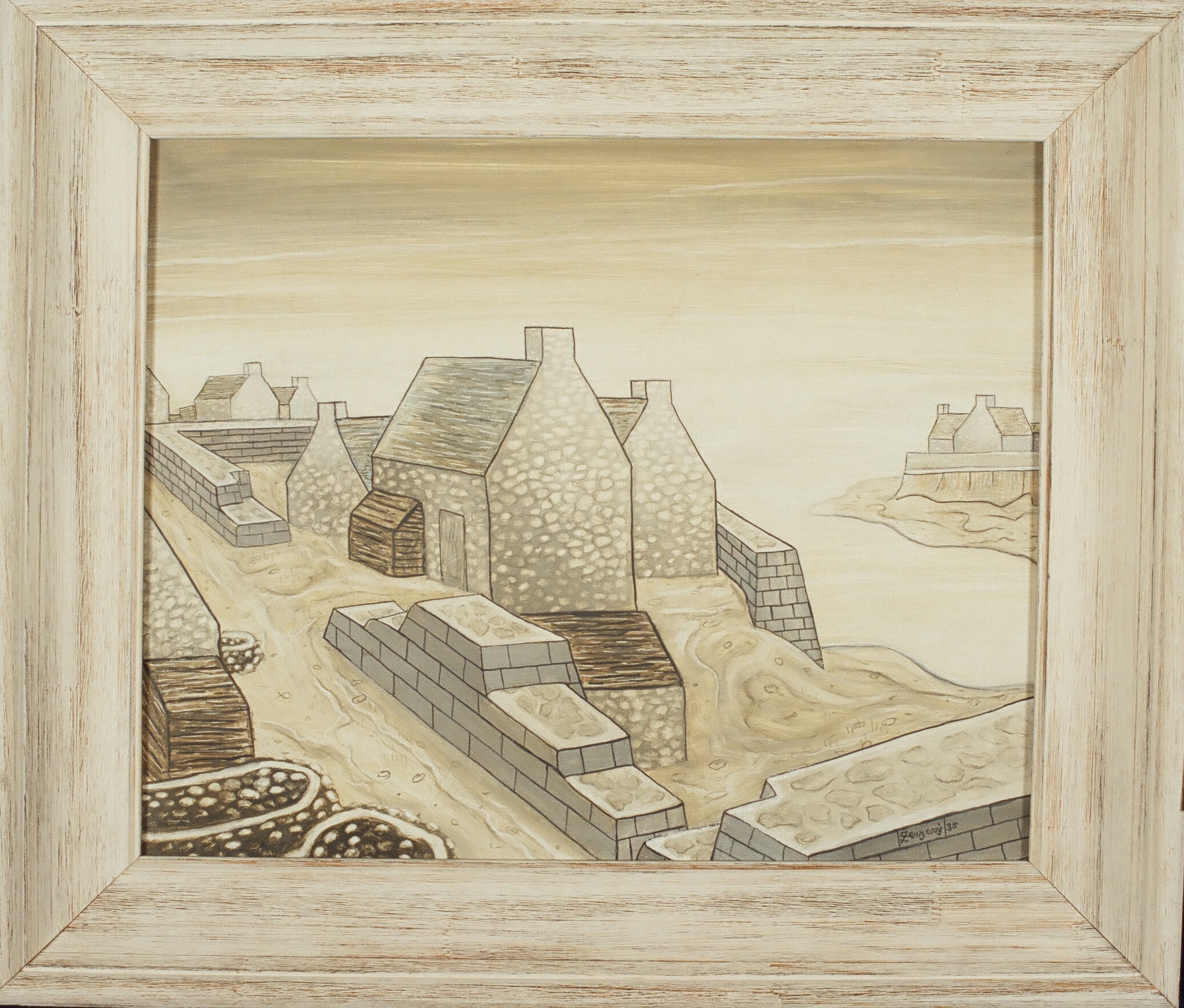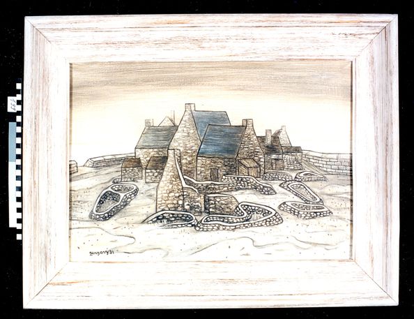 Ile de Sein, rozměry: 40 x 60 cm + okraje plátna, technika: tempera na plátně, signatura: značeno vpravo dole Zerzavý 31