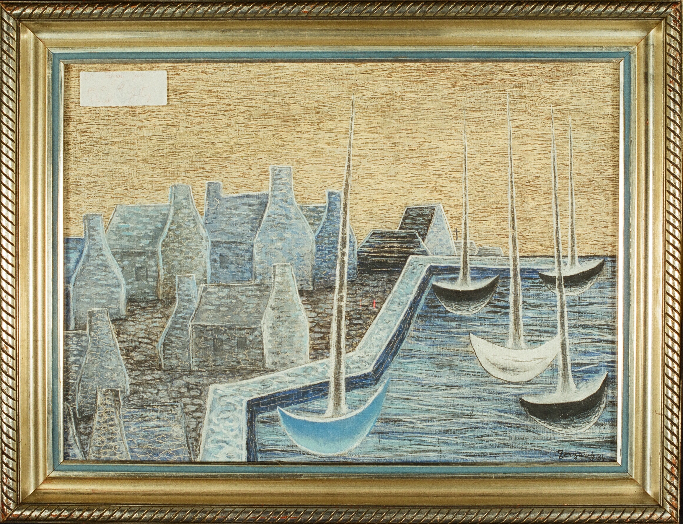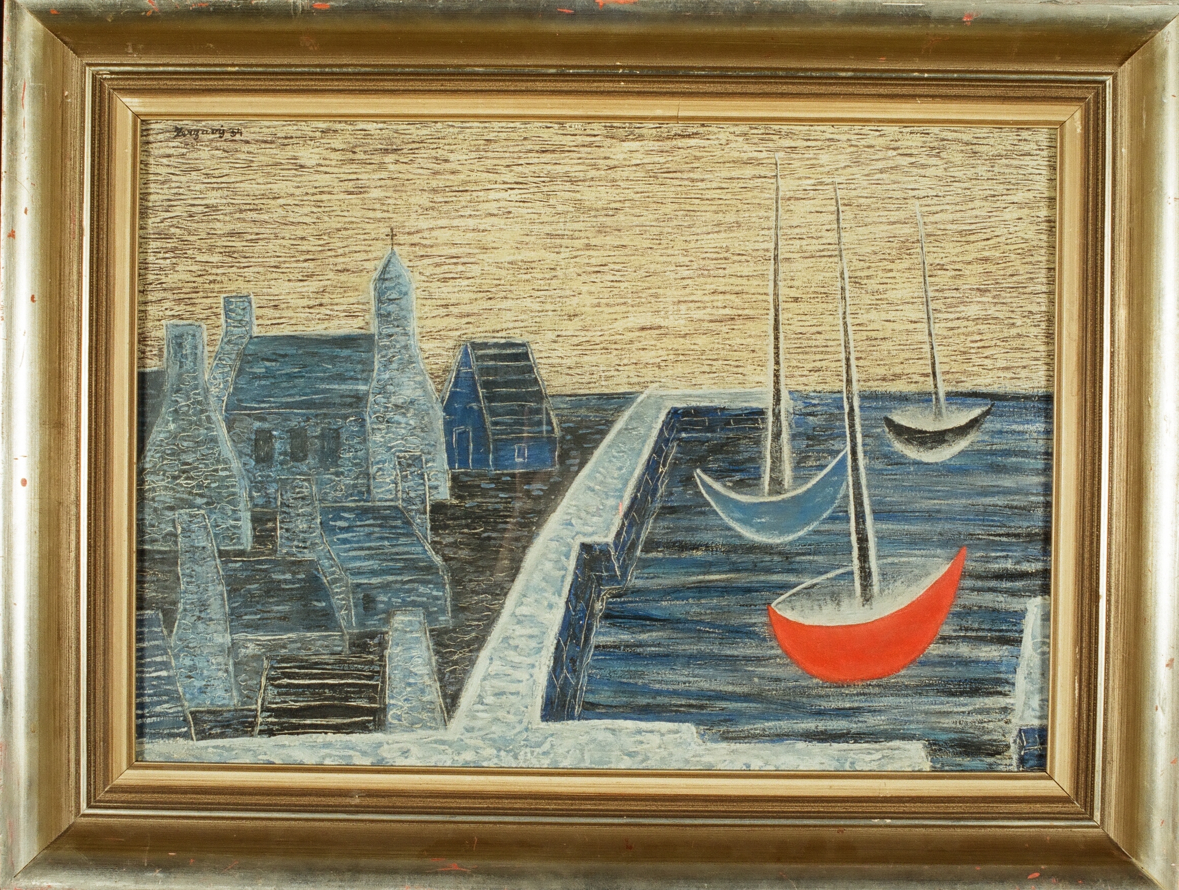Lodě v přístavu, rozměry: 42 x 59,5 cm, technika: tempera na plátně, signatura: značeno vlevo nahoře Zerzavý 34