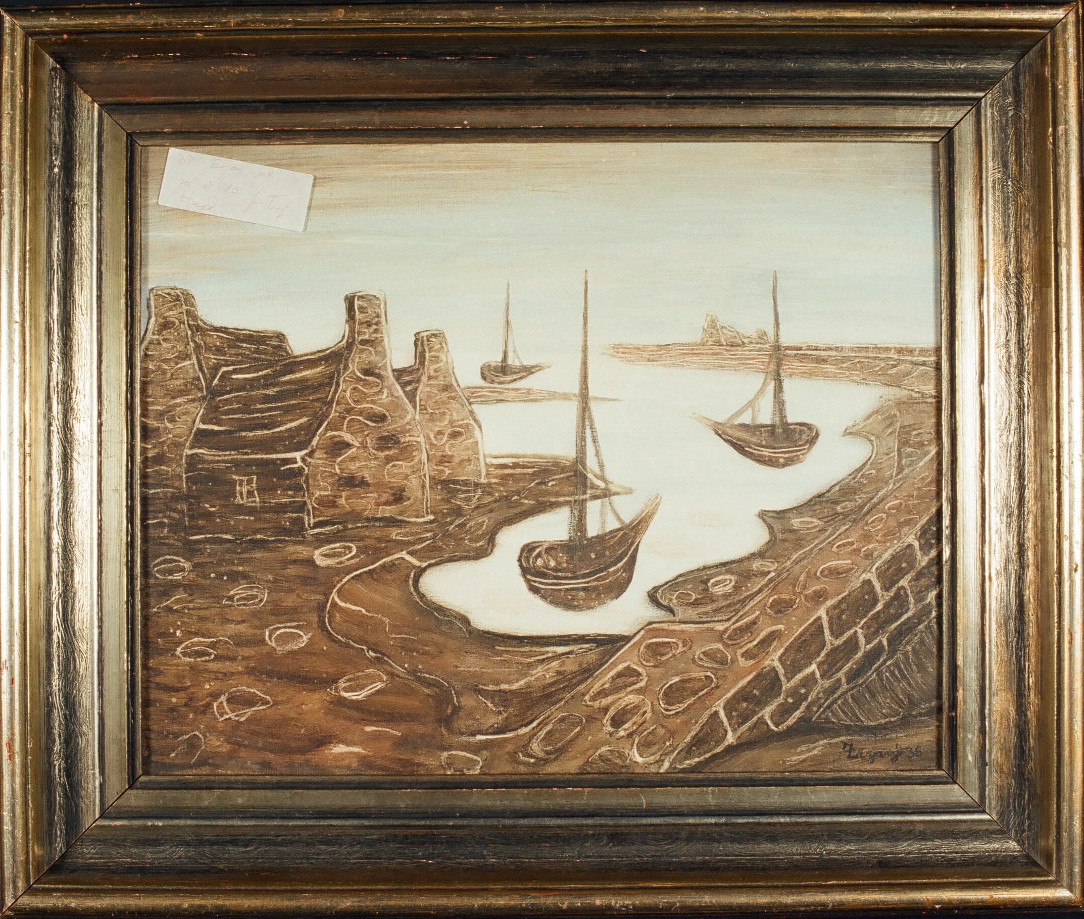 Lodě v Camaretu, rozměry – 50,5x60,5 cm, signatura umístěna vpravo dole „Zerzavý 34“, tempera na plátně, rám