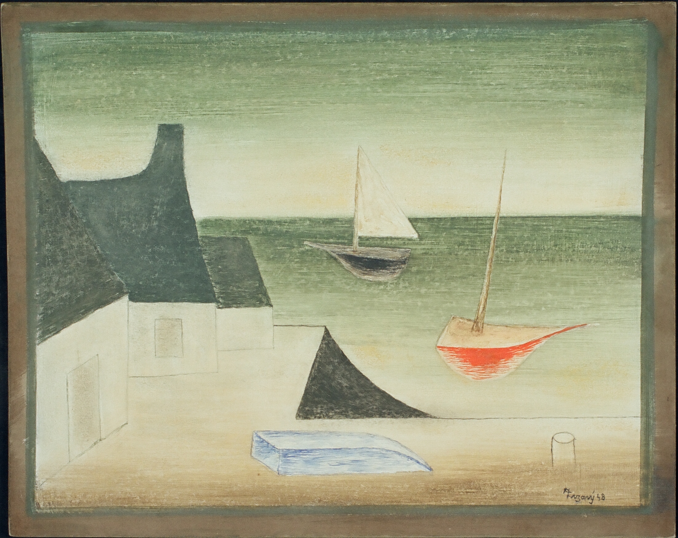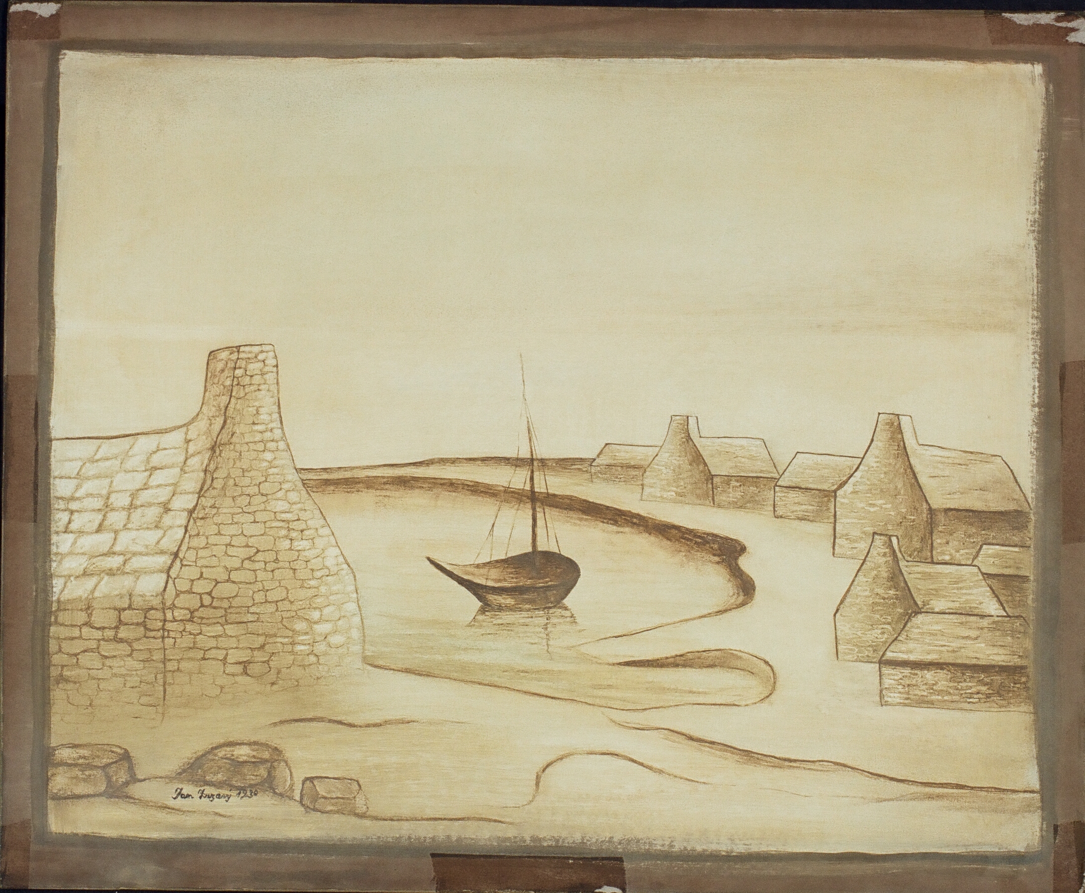 Bretaňský přístav, rozměry: 40 x 50 cm, technika: tempera na lepence, signatura: vpravo dole Zrzavý 48