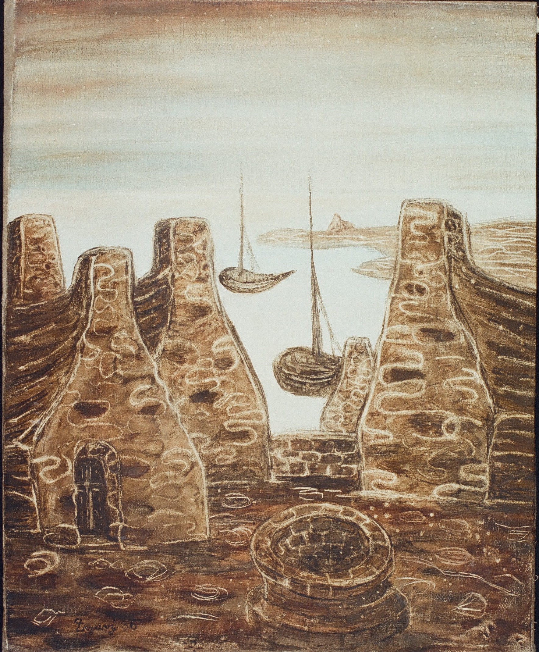 Ile de Sein, rozměry: 40 x 50 cm + okraje plátna, technika: tempera na plátně, signatura: značeno vpravo dole Zerzavý 31