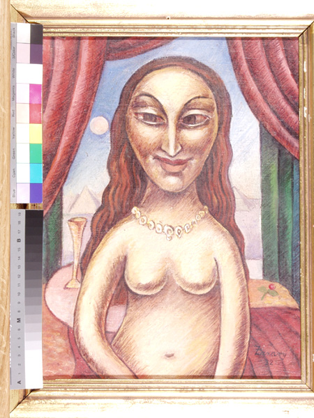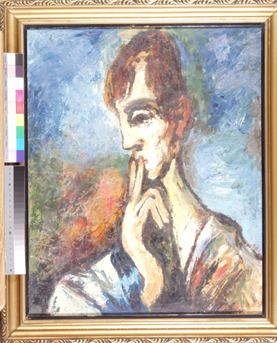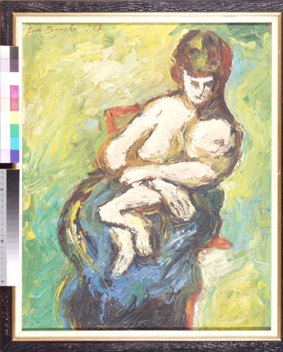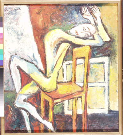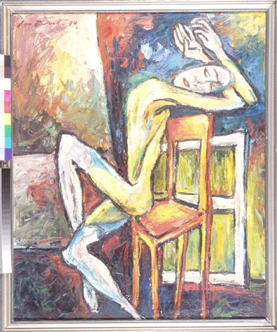 Sedící, 57 x 51 cm, olej na plátně - rámováno, signováno - Jan Bauch 1977 - vlevo nahoře . Pozn. Podle znaleckého posudku Ing. Ivana Baťky se jedná o dílo Jana Baucha (nar. 1898), odhadní cena činí podle posudku 85.000,- Kč. Reprodukce díla je publikována v kalendáři firmy BASF.