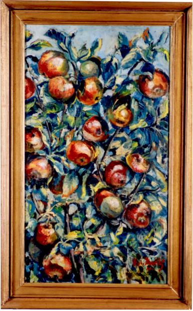 Jablka na větvi, rozměry: 70,5 x40cm, malba na plátně, signováno červeně dole vpravo Boh. Dvorský. Podrobnosti...