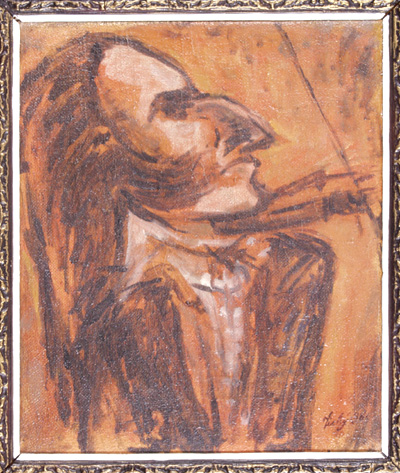 Paganini, 30 x 26 cm, olej na plátně - rámováno, signováno - Tichý 38 - vpravo uprostřed. Pozn. Podle znaleckého posudku Ing. Ivana Baťky se jedná o dílo Františka Tichého (nar. 1896), odhadní cena činí podle posudku 95.000,- Kč.