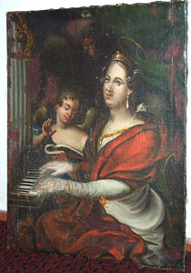 Sv. Cecílie, 85 x 64,5 cm, olej na plátně, signováno - F. Goya - vpravo dole - vyškrabáno a černě obtaženo černou barvou, za signaturou - nečitelná datace. Pozn. Jedná se o kvalitní dobový obraz, který byl odcizen, pozměněn a poté vydáván za dílo F. Goyi. Obraz je napnut na novém nekvalitním a neodborném blintrámu z měkkého dřeva. Na zadní straně dole vlevo je umístěno kulaté novodobé razítko. S velkou pravděpodobností se jedná o razítko se státním znakem. Vedle něj nápis propisovací tužkou - pravděpodobně Goya, čitelné pouze G. Vpravo od jména nečitelná datace. Pod nápisem Goya římská číslice XI.