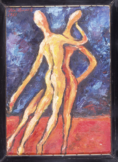 Tančící, 50 x 35 cm, olej na plátně - rámováno, signováno - Jan Bauch 1961 - vlevo nahoře. Pozn. Podle znaleckého posudku Ing. Ivana Baťky se jedná o dílo Jana Baucha (nar. 1898), odhadní cena činí podle posudku 55.000,- Kč.