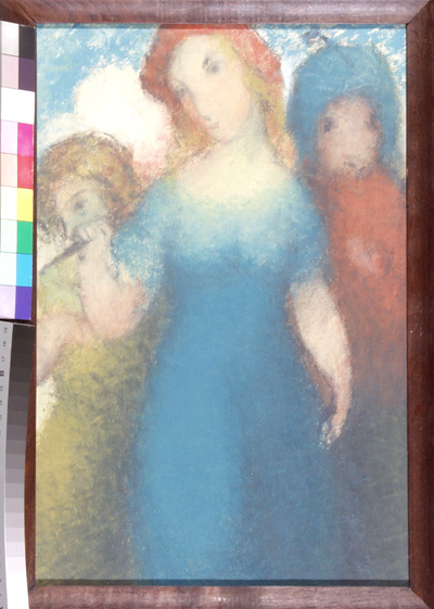 Tři postavy, 40 x 27 cm, kombinovaná technika na papíře - rámováno, paspartováno, signováno - Zrzavý 30 - vpravo dole. Pozn. Podle znaleckého posudku Ing. Ivana Baťky se jedná o dílo Jana Zrzavého z roku 1930, odhadní cena činí podle posudku 68.000,- Kč. Reprodukce díla je publikována v kalendáři firmy BASF.
