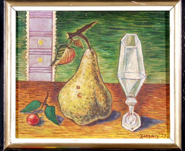Zátiší s hruškou, 26 x 30 cm, olej na plátně - rámováno, signováno - Zrzavý (Zrzavy)29 - vpravo dole.