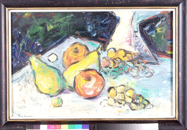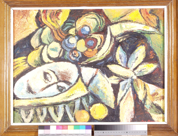 Zátiší s maskou a ovocem, 40 x 60 cm, olej na plátně - rámováno, signováno - Jan Bauch 1974 - vpravo dole. Pozn. Podle znaleckého posudku Ing. Ivana Baťky se jedná o dílo Jana Baucha (nar. 1898), odhadní cena činí podle posudku 68.000 Kč.