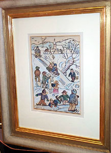Zimní radovánky, 248 x 170 mm (světlost kresby), kresba perem tuší, akvarel, vlepeno do pasparty, rámováno, zaskleno, signováno - Jos.Lada 35 vlevo dole