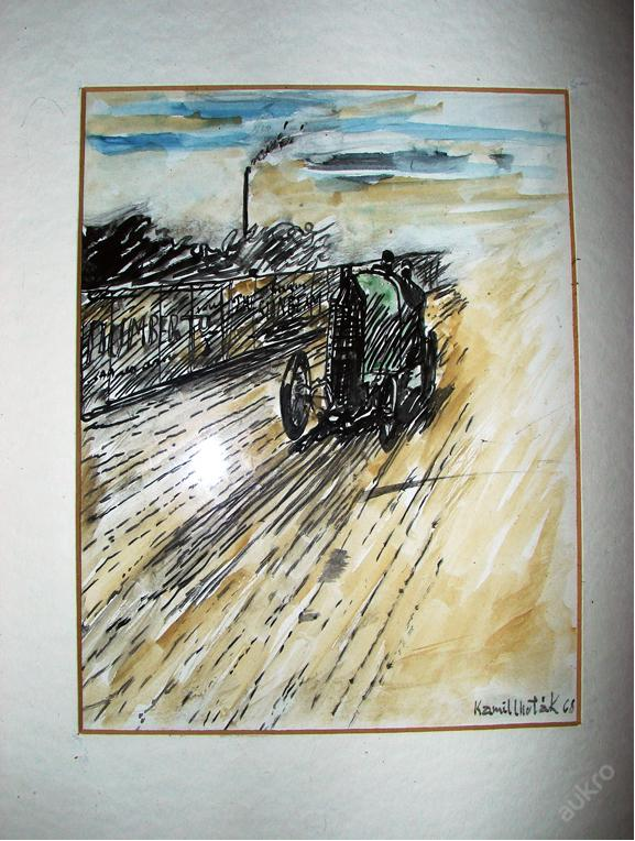 Autor : Kamil Lhoták ? Název : Automobil Technika : akvarel Rozměr: 43 x 37,cm (24 x 20,5 cm) Signováno vpravo dole Kamil Lhoták 68 |