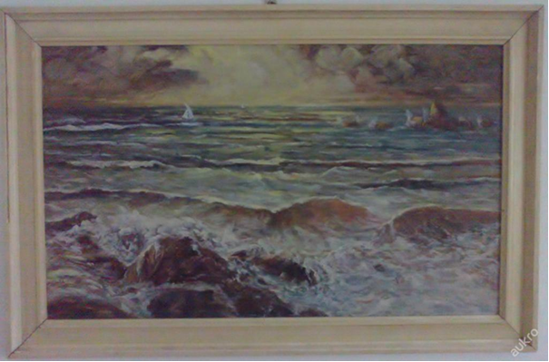 Autor : Kamil Lhoták ? Název : Moře Technika : olej na plátně Rozměr: 49 x 83 cm , rám 60 x 93 cm Signováno vlevo dole Kamil Lhoták 1968 |